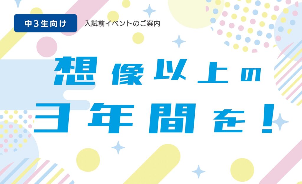Topics ~ 小学6生向け ~入試前のイベントのご案内中学入試プレテスト ~ 中学3生向け ~入試前のイベントのご案内ミニオープンスクール 中学校の一般入試はこちらをクリック 中学校一般入試はこちらをクリック 高等学校の入試はこちらをクリック 高等学校入試はこちらをクリック サポートプラン入試はこちらをクリック サポートプラン入試はこちらをクリック ここから始まる、新しい未来。 ここから始まる、新しい未来。 学校案内 学校案内 中学校 中学校 高等学校 高等学校 学校生活 学校生活 入学・進学